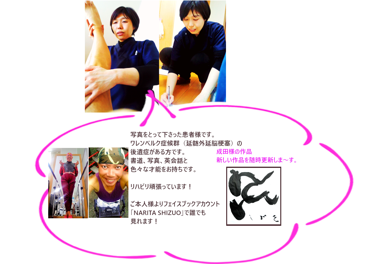 その後、笑里治療院開業。マッサージと日常生活動作訓練を取り入れた新しい形の訪問医療マッサージを始める。
